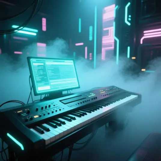 Instrumental Synthwave music created with AI. Experience unique AI-generated songs.
