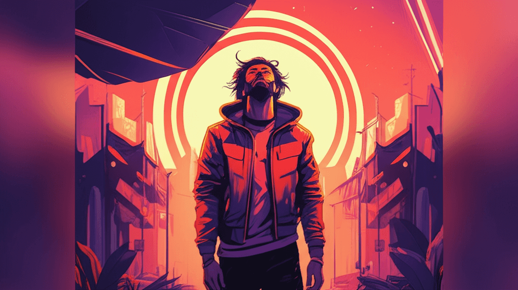 Futuristic beat, Psychedelic vibes, music created with AI. Experience unique AI-generated songs.